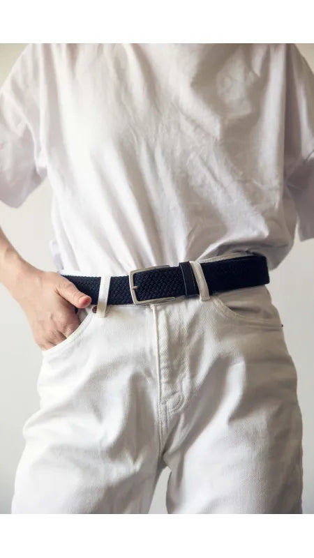 Grâce à sa structure tissée, cette ceinture noire est parfaite quelle que soit votre taille ! Vous pouvez insérer la boucle n'importe où sur sa longueur pour l’ajuster précisément à vos hanches.
