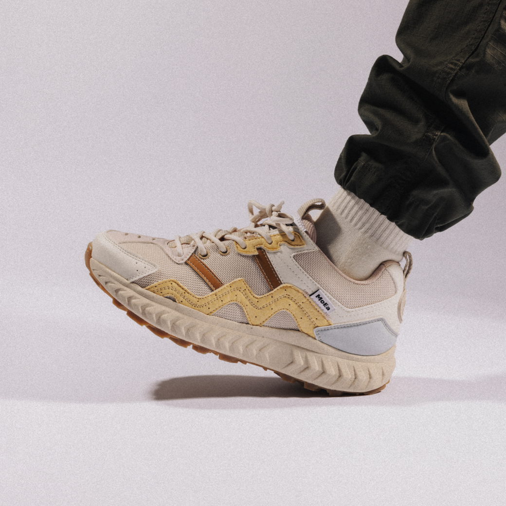 Signées par la marque française Moea, ces baskets vegan se distinguent par leur conception innovante et respectueuse de la planète.