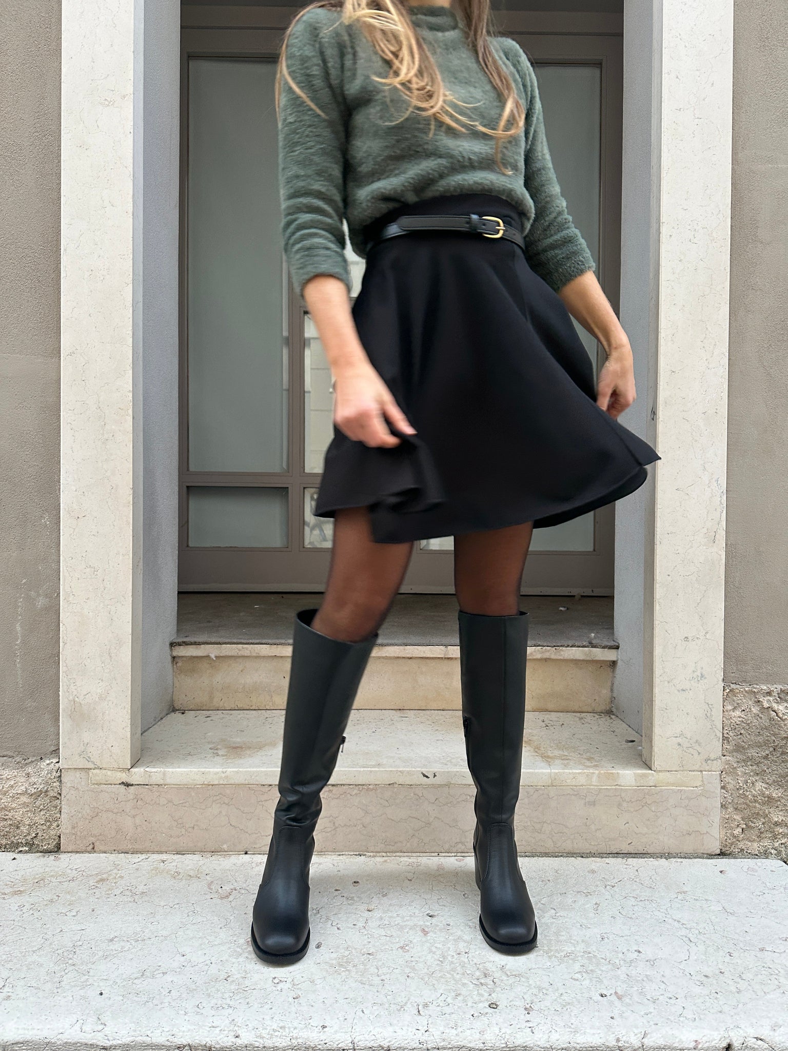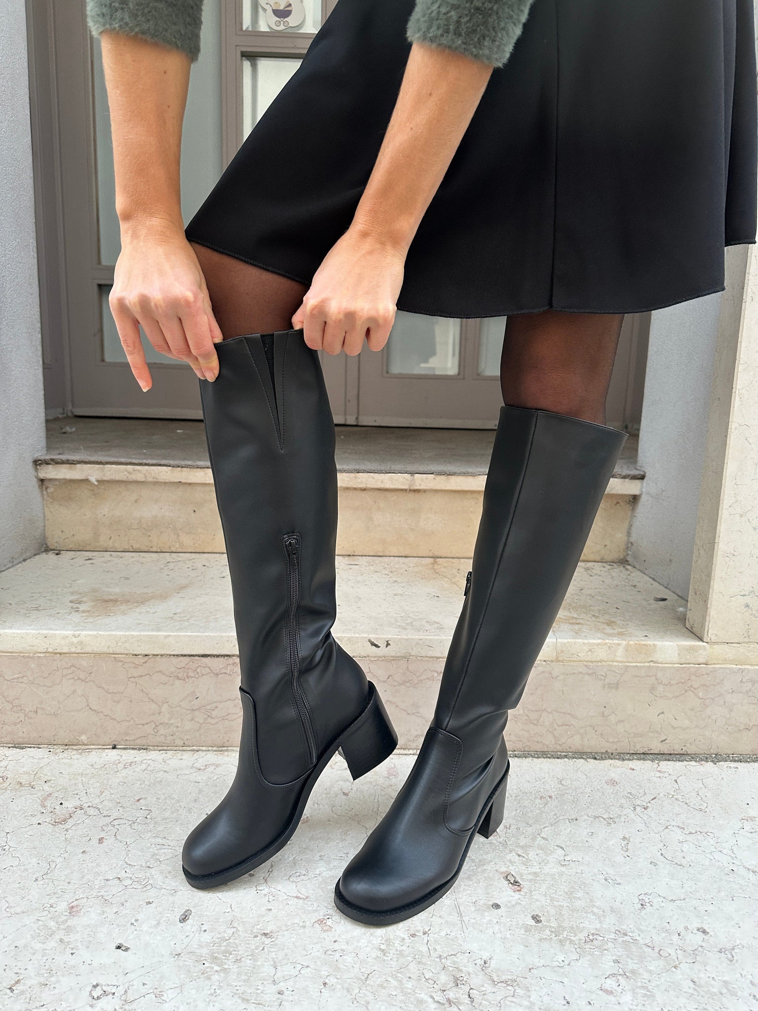 • Bottes sous le genou avec petit insert élastique sur la partie supérieure de la tige.