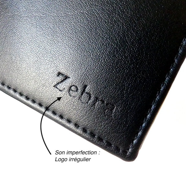 SA PETITE IMPERFECTION : Ce portefeuille est dans la catégorie "Les imparfaits" à -30% de réduction car le logo "Zebra" est irrégulier.