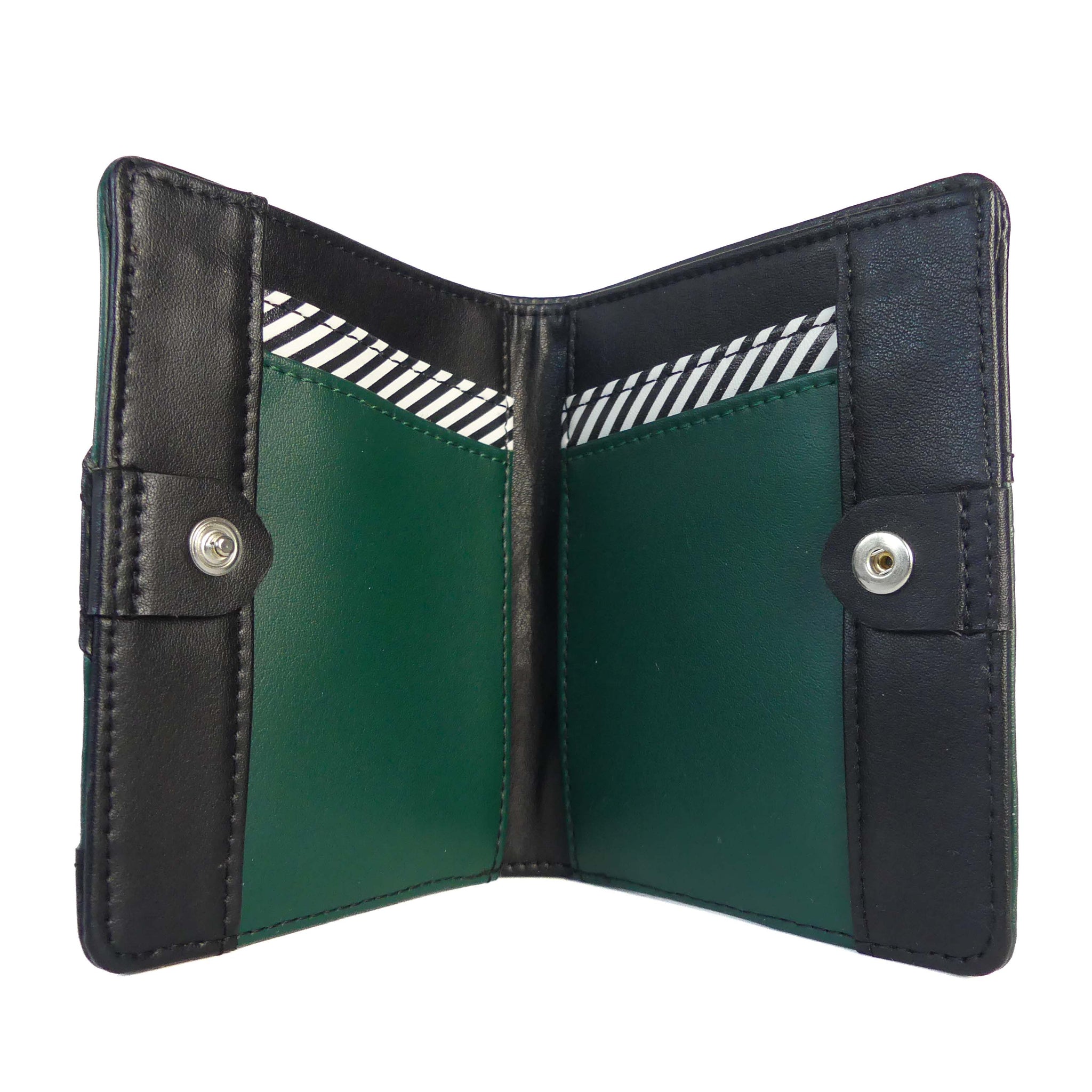 La partie porte-carte est attachée au portefeuille par un système de boutons pressions, ce qui permet de le déclipser ou le reclipser facilement !